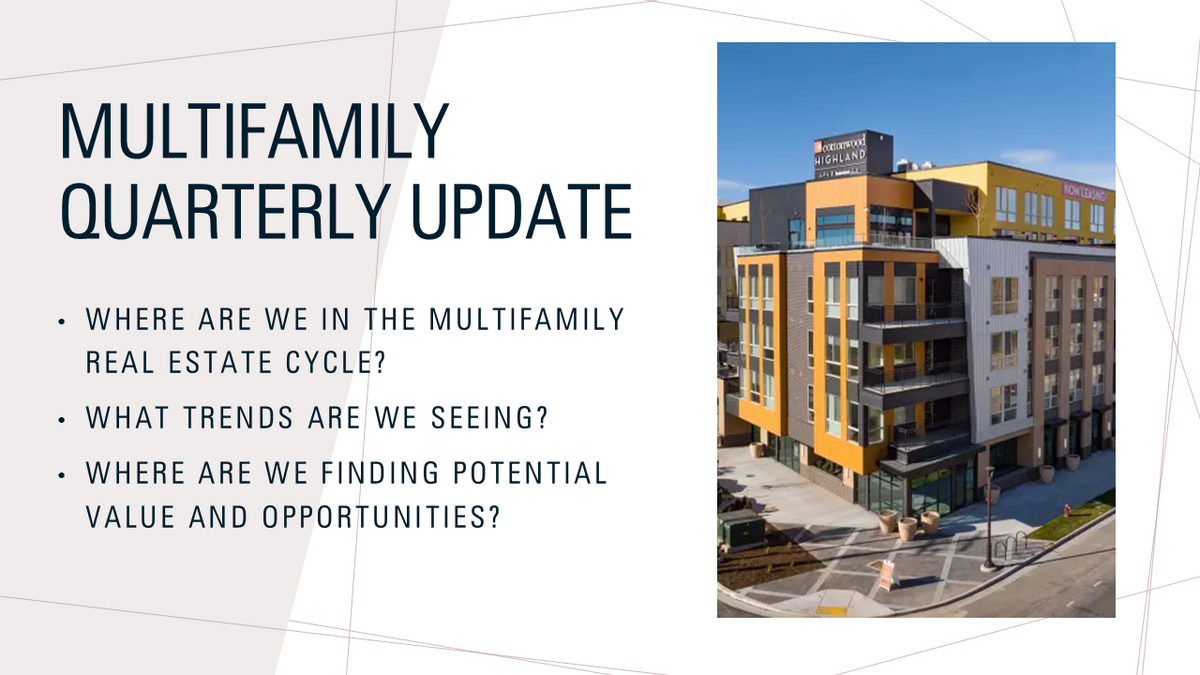 Please join us for our Multifamily Quarterly Update webinar, where we partner with one our multifamily managers to help answer the following questions: